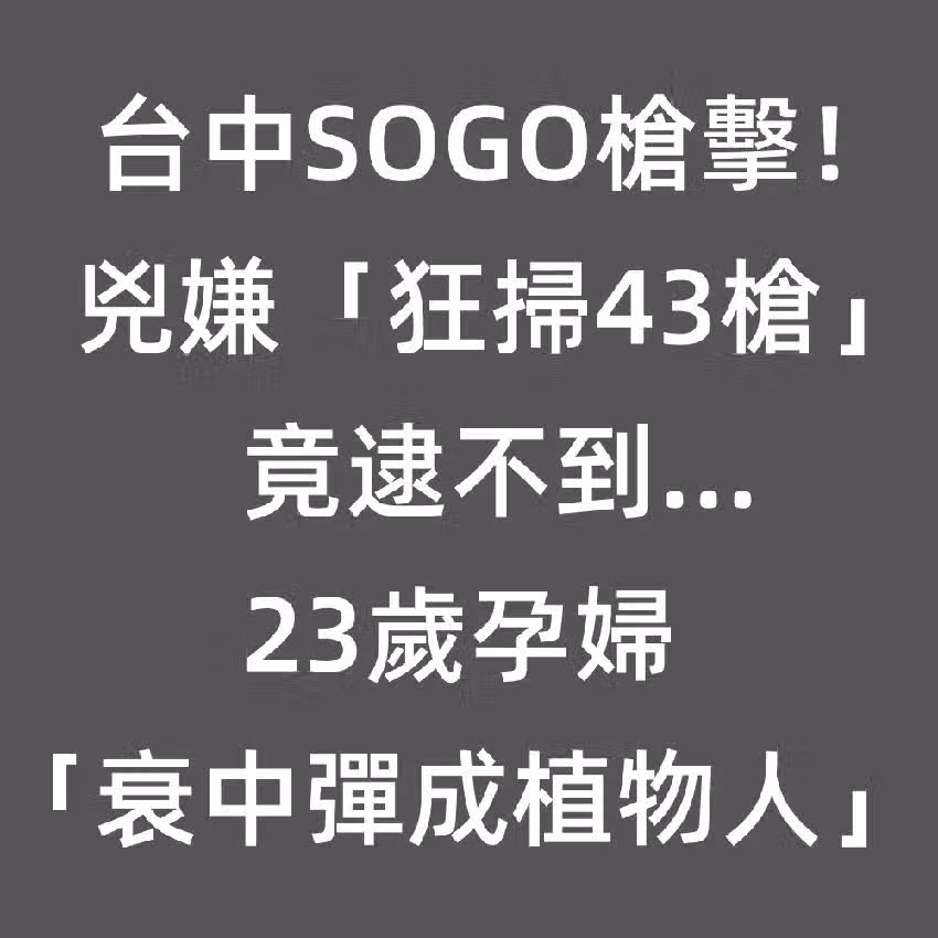 台中SOGO槍擊!兇嫌「狂掃43槍」竟逮不到...23歲孕婦「衰中彈成植物人」