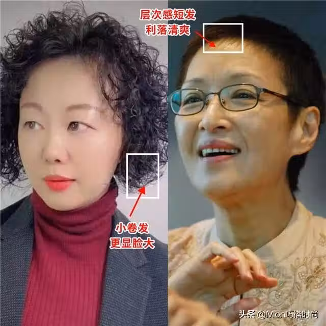 畢竟小卷髮如果處理不當,很容易顯得老氣,而她選擇的短髮造型則更貼合當下的時尚潮流,同時也方便打理,將她的臉部線條襯托得更加清晰,搭配簡約的服裝,整體造型時尚又減齡。