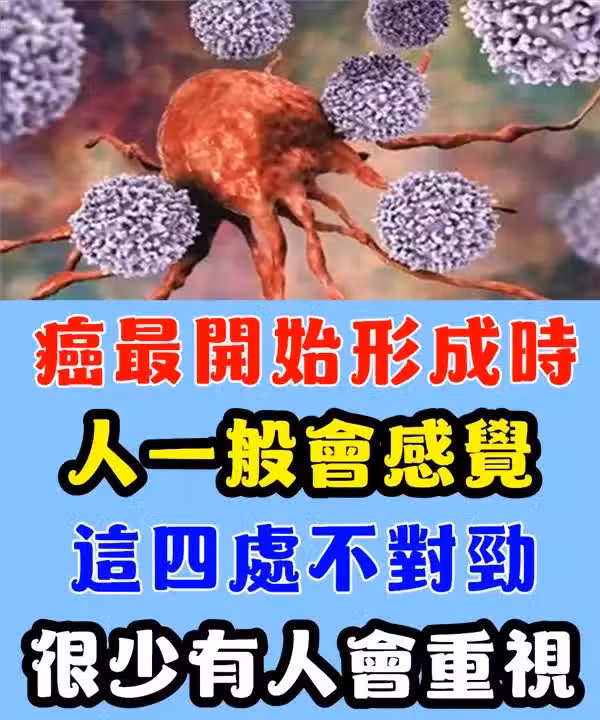 癌最開始形成時,一般人都會感覺身體這四處不對勁,但是很少有人會重視