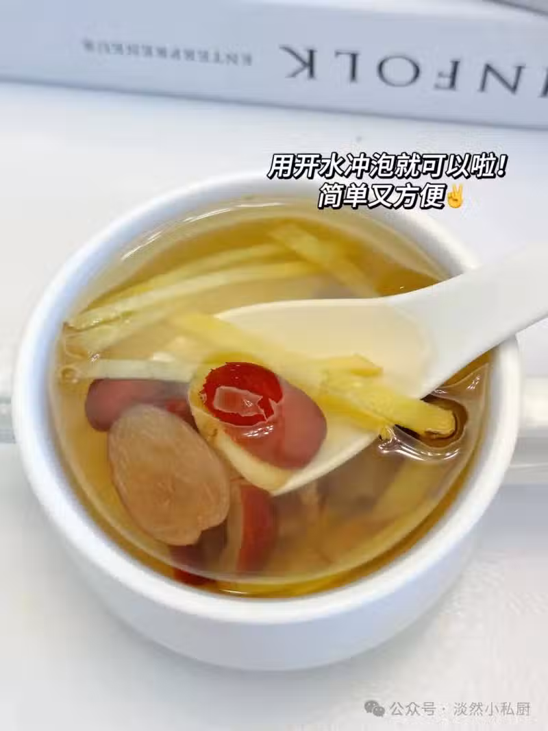 ✅做法:生薑🫚切絲、紅棗切片,加黃芪下鍋炒至微黃即可,每次挖一勺用開水沖泡即可!