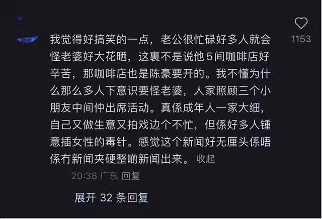 也有網民稱陳豪本身就不是做生意的料,之前他在馬來西亞做生意,最後也是結業倒閉,這個和她妻子本身就沒有關係。