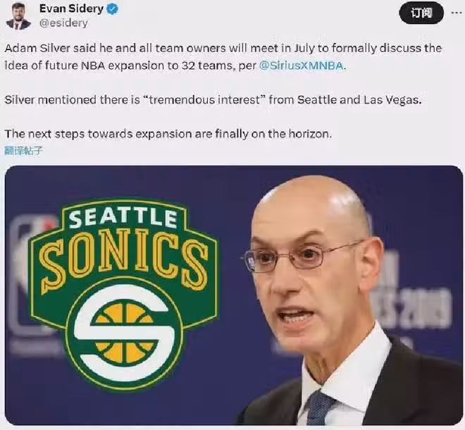 如果不出意外的話,NBA會分別在西雅圖和拉斯維加斯兩座美國本土城市,各自建立一支新球隊....