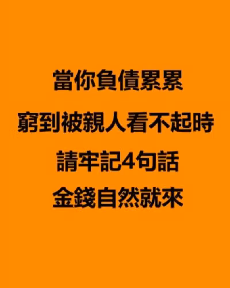當你負債纍纍、窮到被親人看不起時,請牢記4句話金錢自然就來