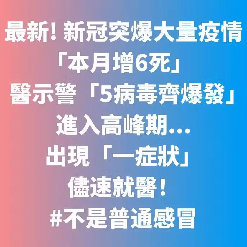 最新/新冠突爆大量疫情「本月增6死」❗ 醫示警「5病毒齊爆發」進入高峰期...出現「一症狀」儘速就醫:不是普通感冒