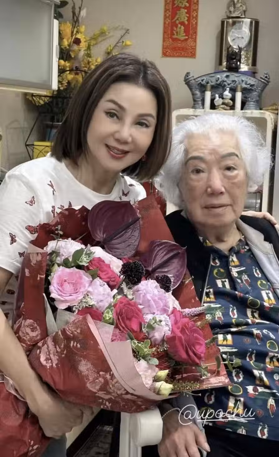 林建岳百歲母親看賽馬,坐輪椅叼煙出鏡,打扮體面滿頭白髮好顯眼