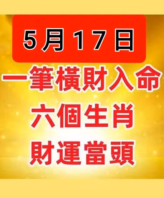 5月17日 會有一筆橫財入命,六個生肖「財運當頭」