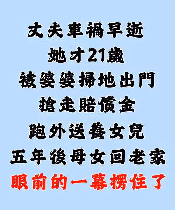 為了霸占丈夫的賠償金,婆家將她和五、六個月大的女兒趕走,讓人震驚的是,短短5年時間,人性之惡竟然再度上演....這到底是怎麼一回事呢?