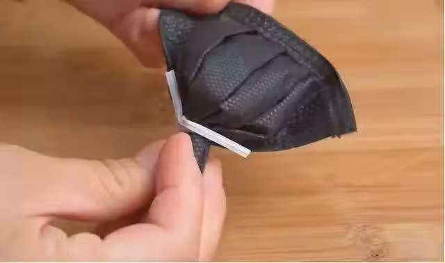 剪掉口罩的橡皮筋,取出其中的鐵絲。