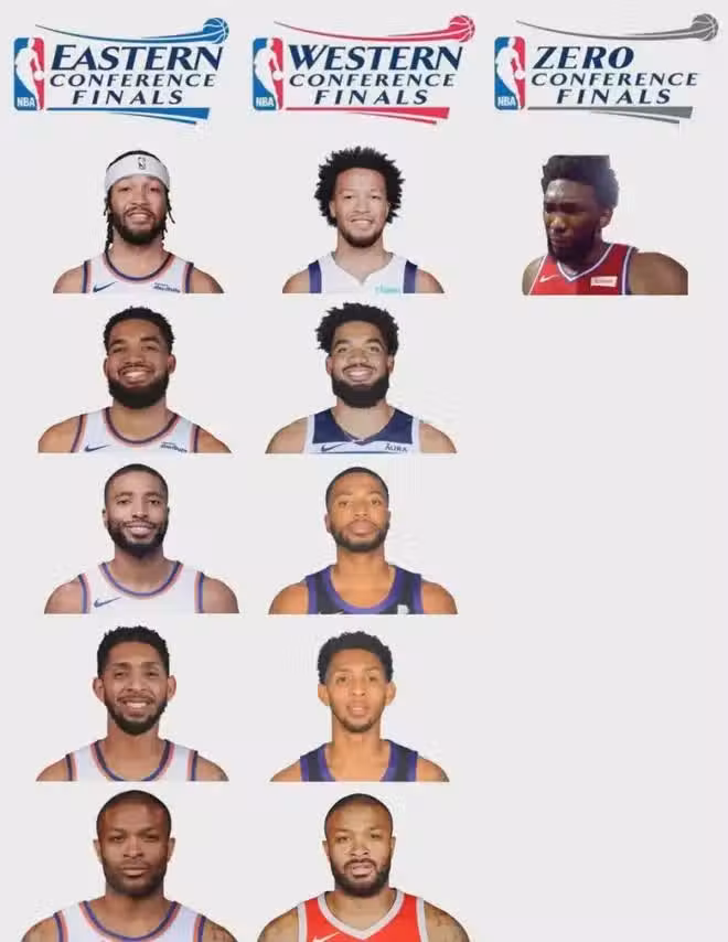 在騎士被步行者淘汰之後,有媒體寫道:生涯前八年,米切爾都帶隊打進季後賽,但還沒進過分區決賽。配圖有點意思:米切爾照鏡子,裡面是恩比德。生涯至今,恩比德打了7次季後賽,其中2次止步首輪,另外5次均是止步次輪。