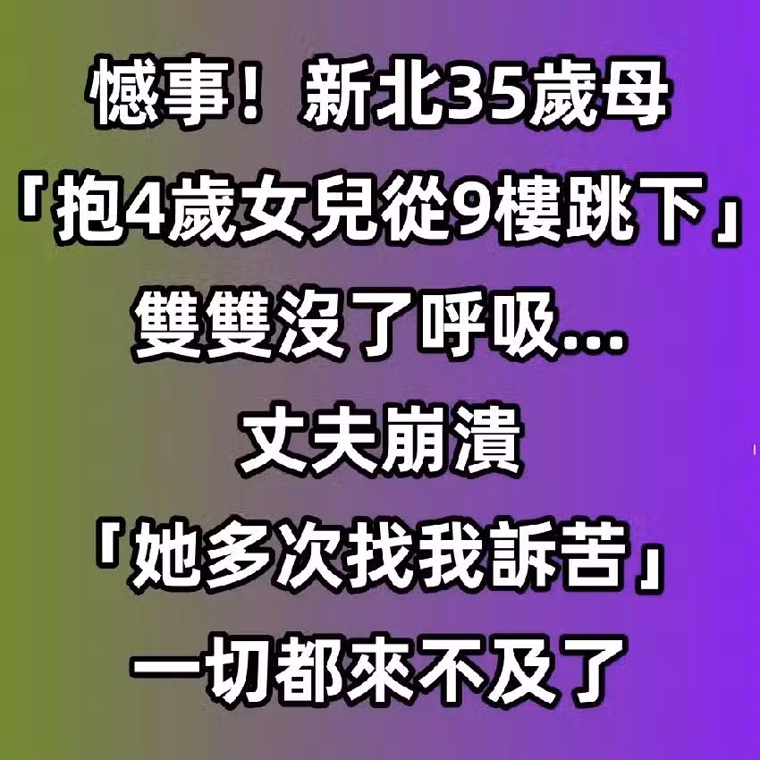 憾事!新北35歲母「抱4歲女兒從9樓跳下」雙雙沒了呼吸...丈夫崩潰「她多次找我訴苦」一切都來不及了 #阿彌陀佛 #一路好走