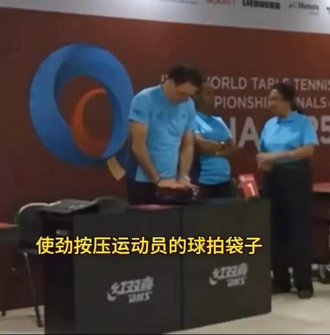 損壞王楚欽球拍的任是誰呢?5月20日,一段相關的視頻曝光,從曝光的視頻中,我們可以清晰看到一個穿著藍色服裝的男性白人工作人員多次用力的按壓裝有王楚欽球拍的袋子,在連續按壓兩次後,他抬頭看到了鏡頭,可即便如此,這哥們還把袋子放在身側,手指伸進袋子持續十幾秒,然後才交接了王楚欽的球拍。值得一提的是,在這哥們拿王楚欽他們的球拍的時候,另一名女性工作人員的輕拿輕放和他形成了鮮明的對比。
