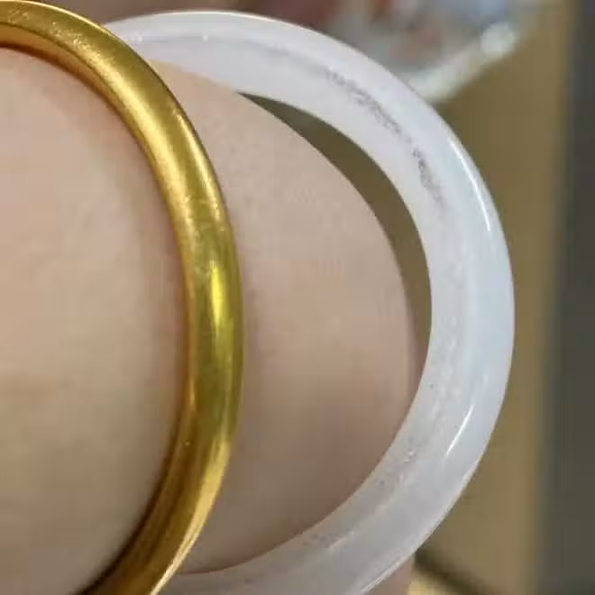 也有寶子們不信邪,非要玉鐲和金鐲一起佩戴,看圖片就很清晰了,金手鐲的磨損非常明顯。拿去保養護理,又是一筆費用。