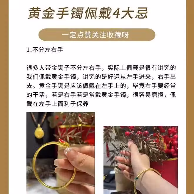 很多人佩戴黃金手鐲的時候,是比較隨意的、甚至沒有區分左右手。