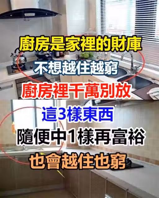 廚房是家裡的財庫,不想越住越窮,廚房裡千萬別放這3樣東西,隨便中1樣再富裕也會越住也窮~