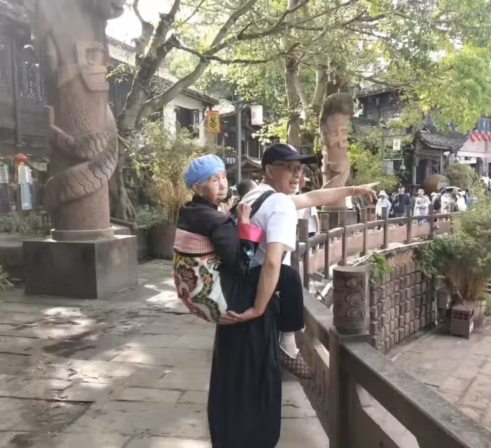 極目新聞記者隨後聯絡了背著媽媽逛景區的叔叔柴萬斌。柴萬斌介紹,他是涼山州會東縣人,今年51歲,目前是鰺魚河鎮人民政府工作人員。他的母親今年88歲,體重只有80公斤。2021年五一小長假,他帶老母親在一座公園遊玩,結果老人不慎跌倒,做了手術,術後並沒有問題。但是過了一年多,老人卻突然癱瘓了,從此與輪椅為伴,離異獨身的柴萬斌照顧母親,但是母親情況越來越差,「差點就不行了」,後來住在眉山的三姐承擔了主要照料老媽媽的重任,老人的狀態一天一天好起來。