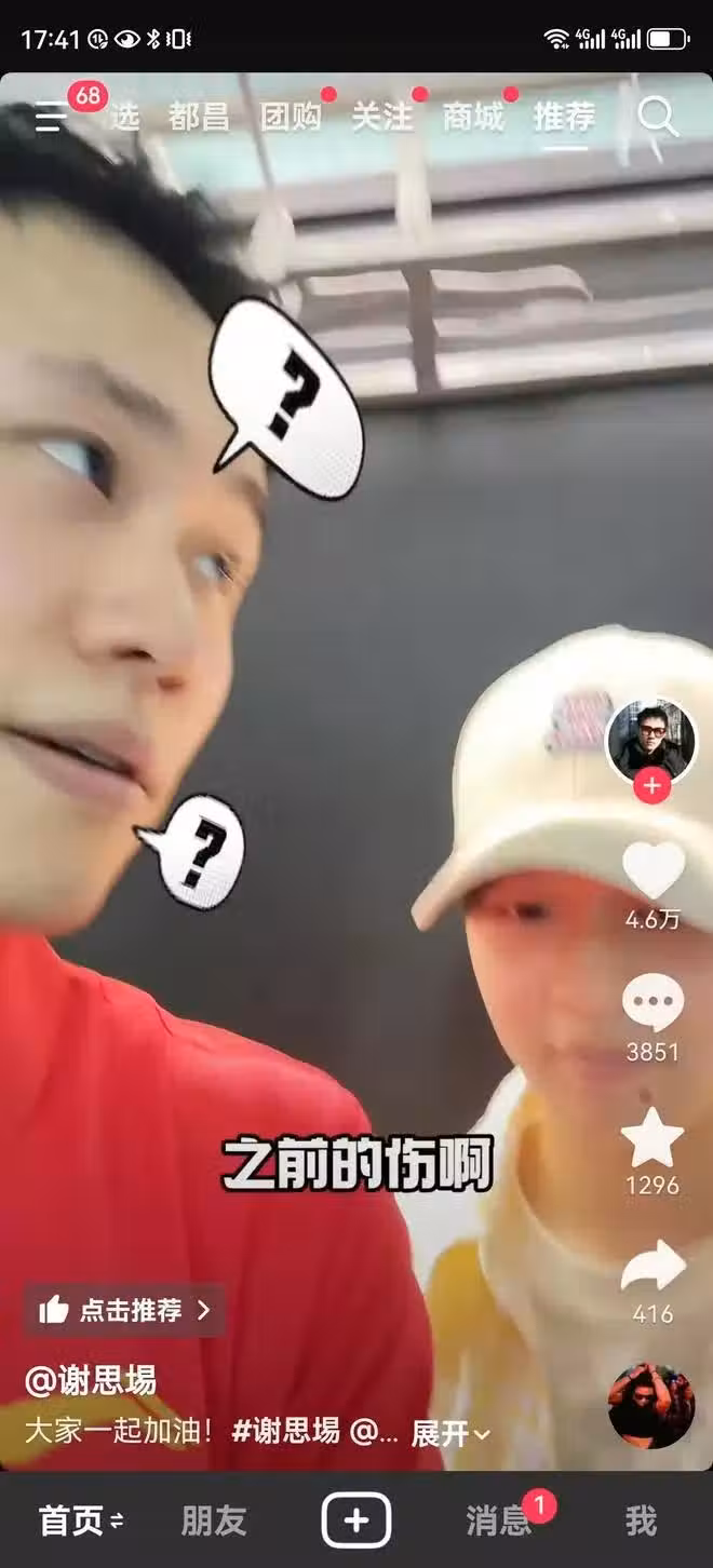 謝思埸發全紅嬋視頻解釋為什麼腳踝傷了還去武漢,評論區全是質疑