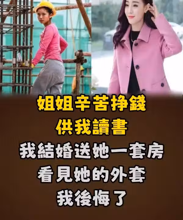 姐姐辛苦掙錢供我讀書,我結婚送她一套房,看見她的外套我後悔了...