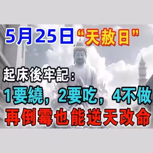 非常靈驗!5月25號「天赦日」,起床後牢記:1要繞,2要吃,4不做,再倒霉也能逆天改命,讓你從年頭旺到年尾!
