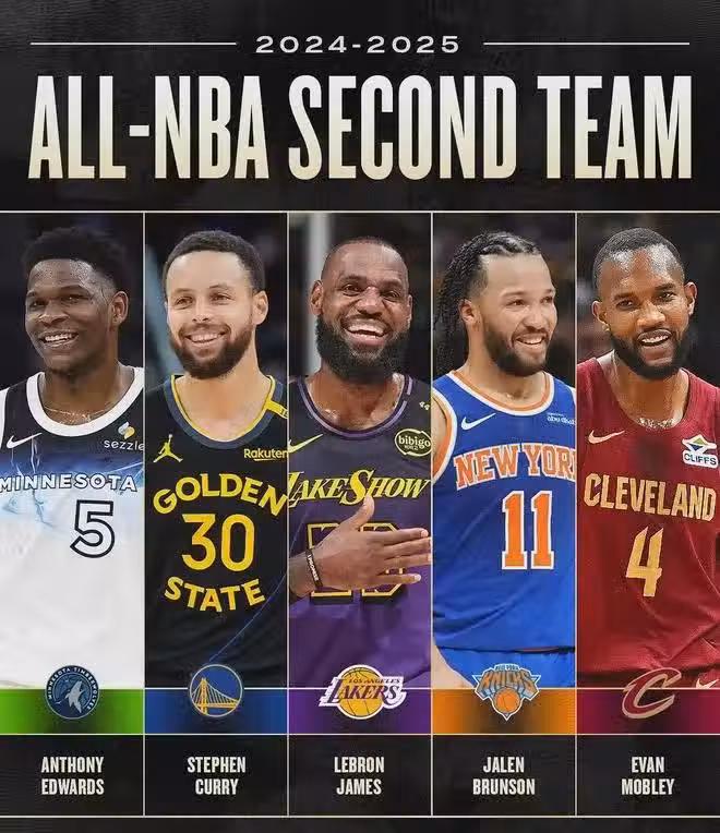 勒布朗詹姆斯入選2024-25賽季最佳陣容二陣,也是讓他延續了自己職業生涯21年連續入選最佳陣容的記錄。勒布朗詹姆斯在常規賽末期,一度遭遇了腹股溝傷病。在三月份的時候,連續缺席了7場比賽。不過,後期火速回歸,連續打了12場比賽,常規賽最後一場沒有打,才讓他的出勤場次達到了70場比賽。