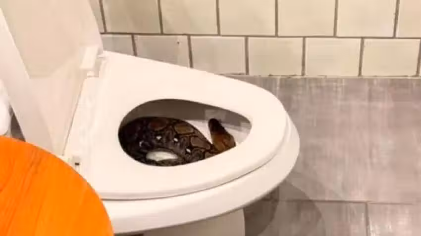 該名男子如廁時赫然發現馬桶內竟有一條大型蟒蛇蜷縮其中。