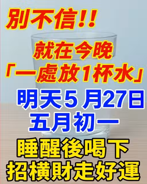 別不信!就在今晚一處放「1杯水」!明天「五月初一」睡醒後喝下,招橫財走好運!