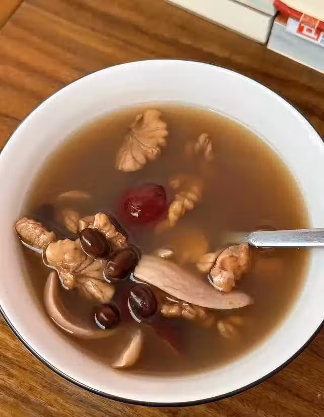 ◦ 加入百合、紅棗、核桃仁,繼續燉煮20分鐘。