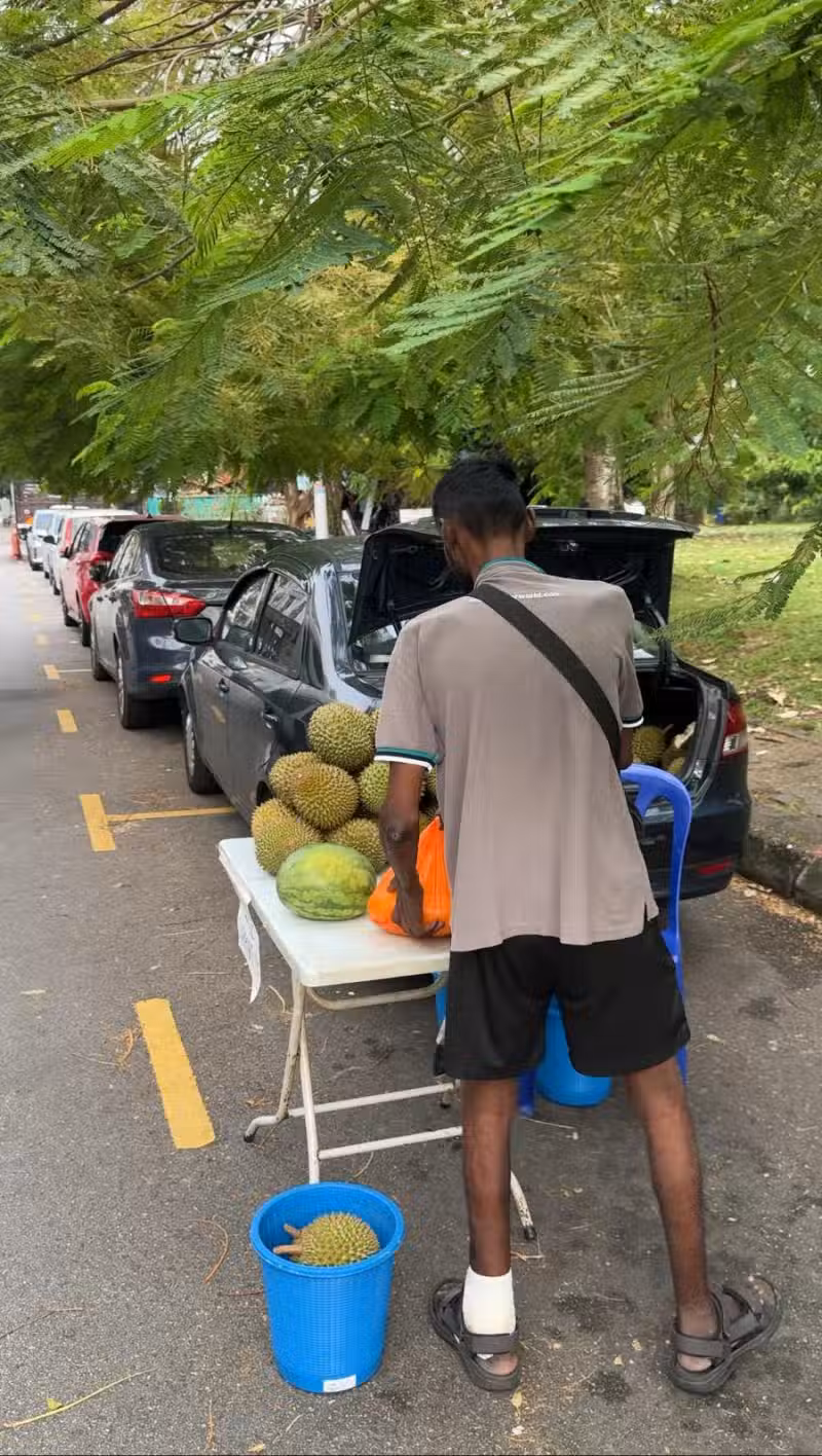 他通常每天會帶10到20公斤的榴槤,還有芒果、西瓜,甚至是臭豆(petai)來賣。他補充說,雖然每賣出一公斤榴槤只賺取RM3的微薄利潤,但生意好的時候每天還是可以賺到RM100到RM120。