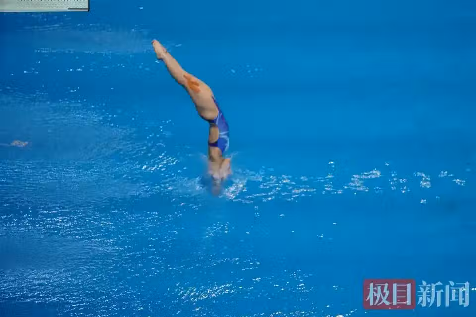 極目新聞記者在現場看到,本次因傷病未能參賽的全紅嬋,也來到了現場觀賽。她在場邊和廣東選手陳艾森交流互動,一同為選手們加油助威。在陳藝文第四跳實現總得分反超時,全紅嬋高興地鼓著掌吶喊。