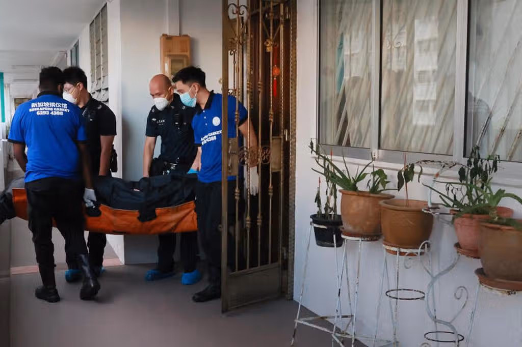組屋房間天花板突然滴下血水,屋主嗅到血水又腥又臭,趕緊跑上樓看個究竟,發現樓上女住戶的姐姐正在敲門,掛在門外的飯盒疑似兩日沒人領取,揭發77歲老婦已成腐屍。
