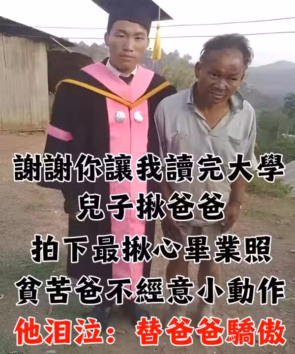 出身農家的他身穿學士服和爸爸合影,下一秒爸爸的舉動讓人淚目…這位畢業生名叫披索,從小和爸爸在鄉下生活。