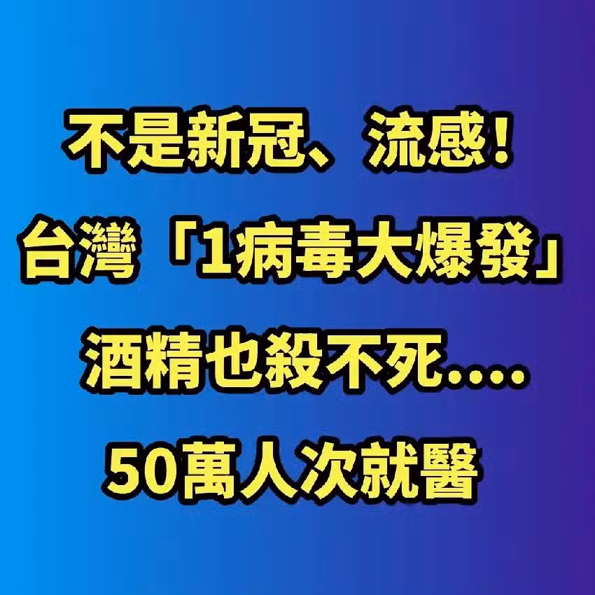 不是新冠、流感!台灣「1病毒大爆發」酒精也殺不死....50萬人次就醫