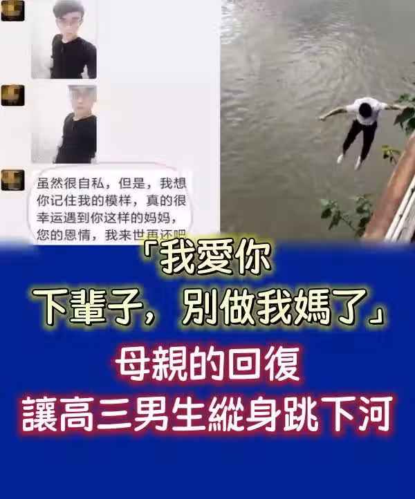 「我愛你, 下輩子,別再做我媽了!」母親的回覆讓高三男生縱身跳下河
