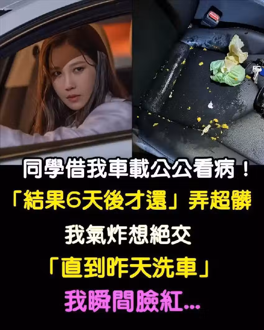 同學要載公公看病!忙和我借車「結果6天後才還」還弄超髒 我氣炸想絕交「直到昨天洗車」我瞬間臉紅了