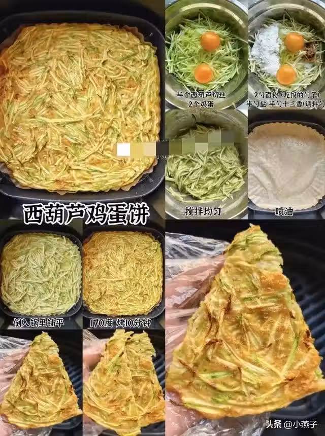 食材:西葫蘆半根+雞蛋2個+麵粉2勺+鹽/十三香半勺。