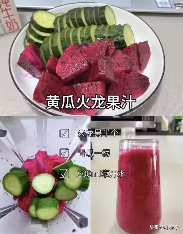 食材:火龍果半個、青瓜一根、200ml涼開水。