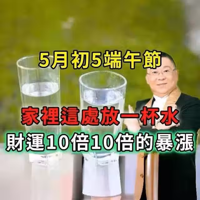 風水大師忍不住泄露:5月初5端午節,家裡這處放一杯水,財運10倍10倍的暴漲!實在太靈驗…