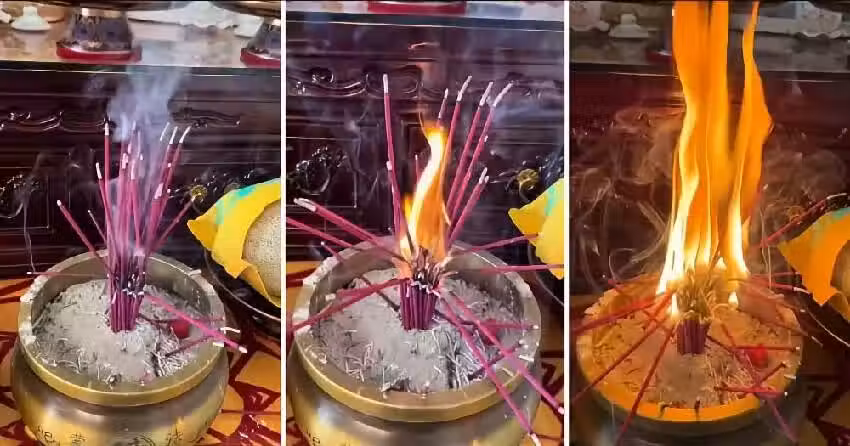 女子「給財神上香」結果香竟從中間燒起來,網驚:這可是斷頭香啊...