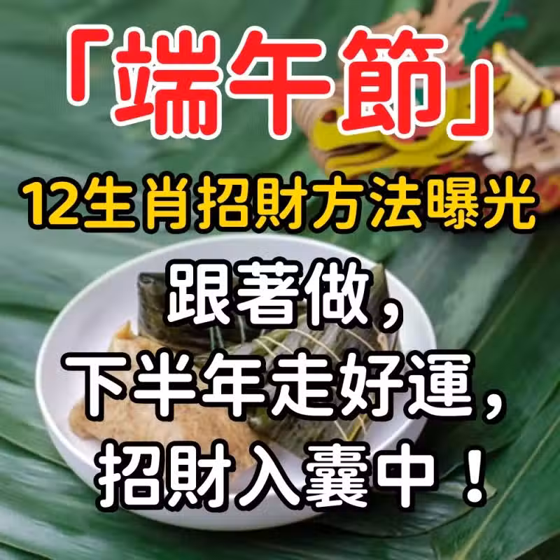 「端午節」12生肖招財方法曝光!跟著做,下半年走好運,招財入囊中!