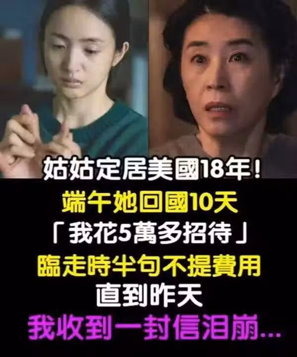 姑姑定居美國18年!端午她回國十天「我花五萬多招待」臨走時半句不提費用「昨天我收到一封信」淚崩