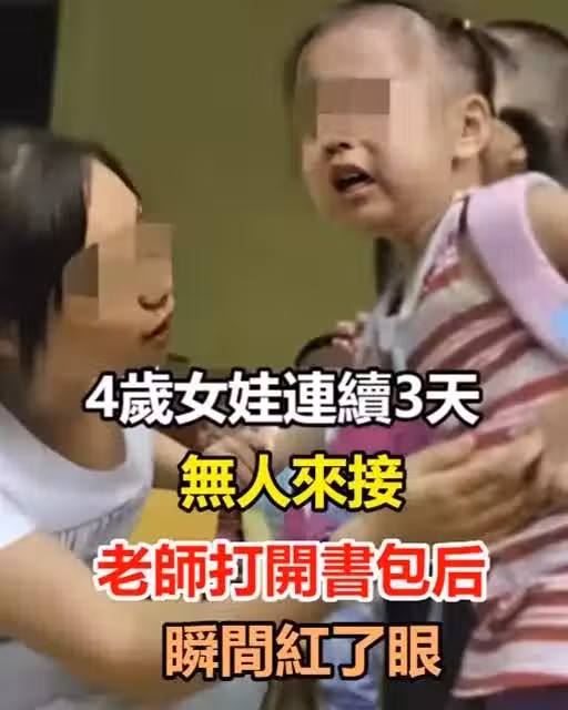 幼兒園4歲女娃「連續3天」無人來接,老師打開書包後,瞬間紅了眼