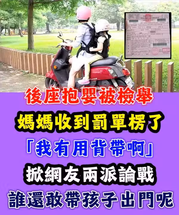 日前有一位媽媽發文,表示自己收到了警察局寄來的交通罰單,竟然是被民眾檢舉「機車超載」而開罰300元,讓她感到既無奈又生氣,直呼「難道現在一定要有車子才能載小孩出門嗎?」掀起了網友們兩派論戰。