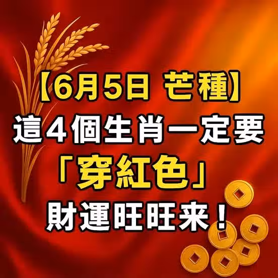 【6月5日 芒種】這4個生肖一定要「穿紅色」財運旺旺來!