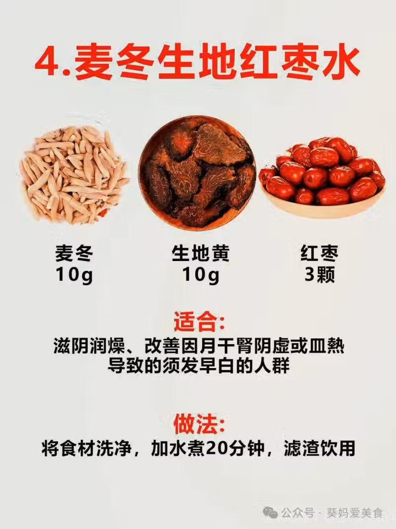 4. 麥冬+生地黃+紅棗: