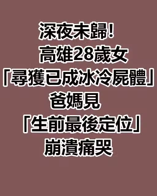 深夜未歸!高雄28歲女「尋獲已成冰冷屍體」 爸媽見「生前最後定位」崩潰痛哭