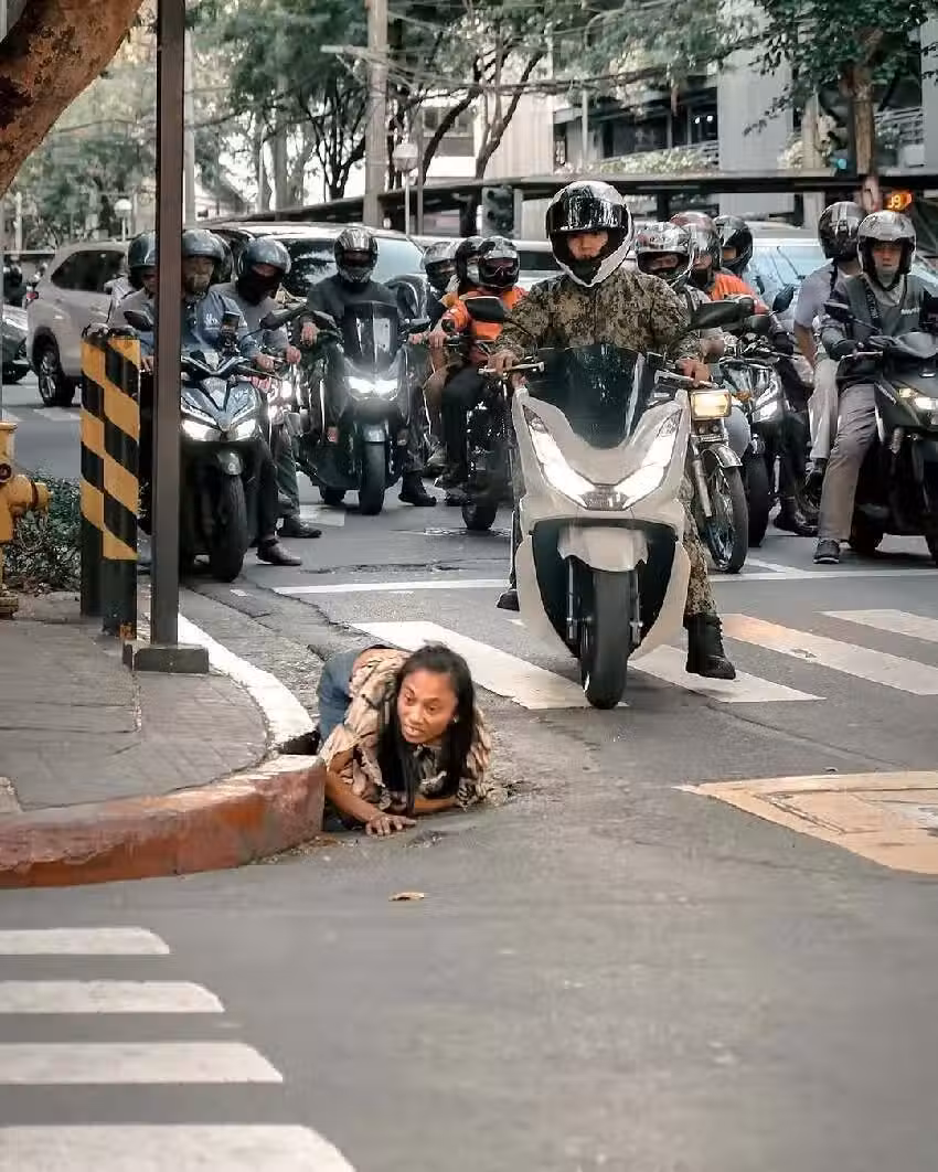 貞子翻版?排水孔「突然爬出長發女子」嚇壞路人 真實身份曝光「下面不只藏一人」