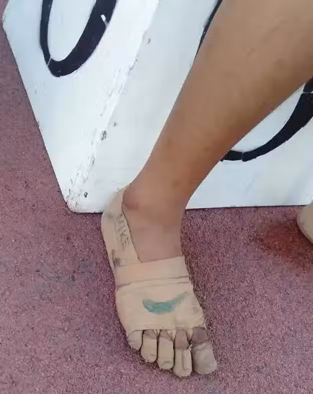 買不起球鞋,11歲女孩膠布纏腳當鞋,還畫NIKE勾勾忍痛奪3金牌,球鞋廠商得知後,結局太感人...