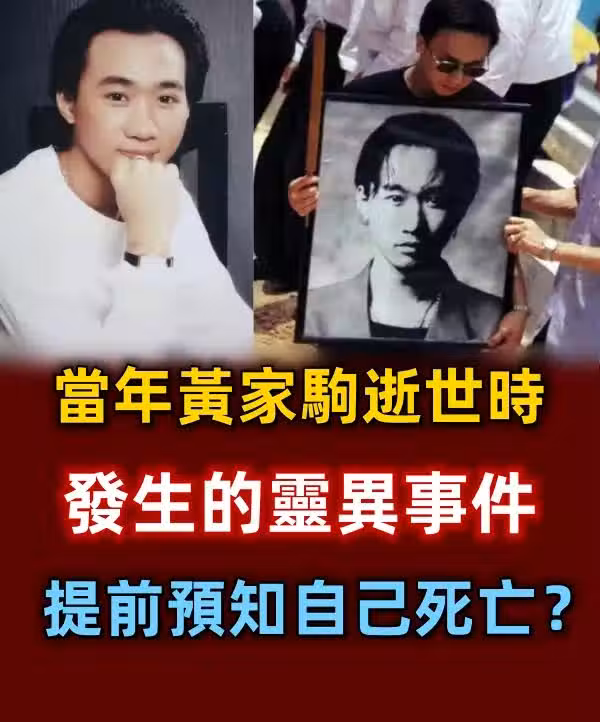 據說人在逝世之前自己都有預感,一代人心中的歌神黃家駒也不例外,據說當時黃家駒在意外發生之前和之後都有很多詭異事件,但當時人們並沒有太在意,但是有專家經過研究後,黃家駒死前曾預知自己的死亡。