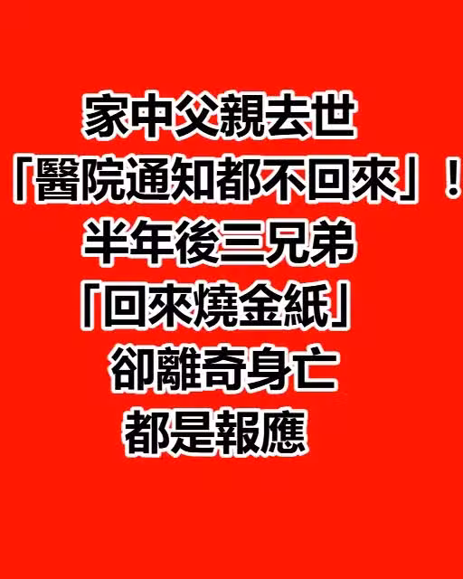 家中父親去世「醫院通知都不回來」!半年後三兄弟「回來燒金紙」卻離奇身亡:都是報應...