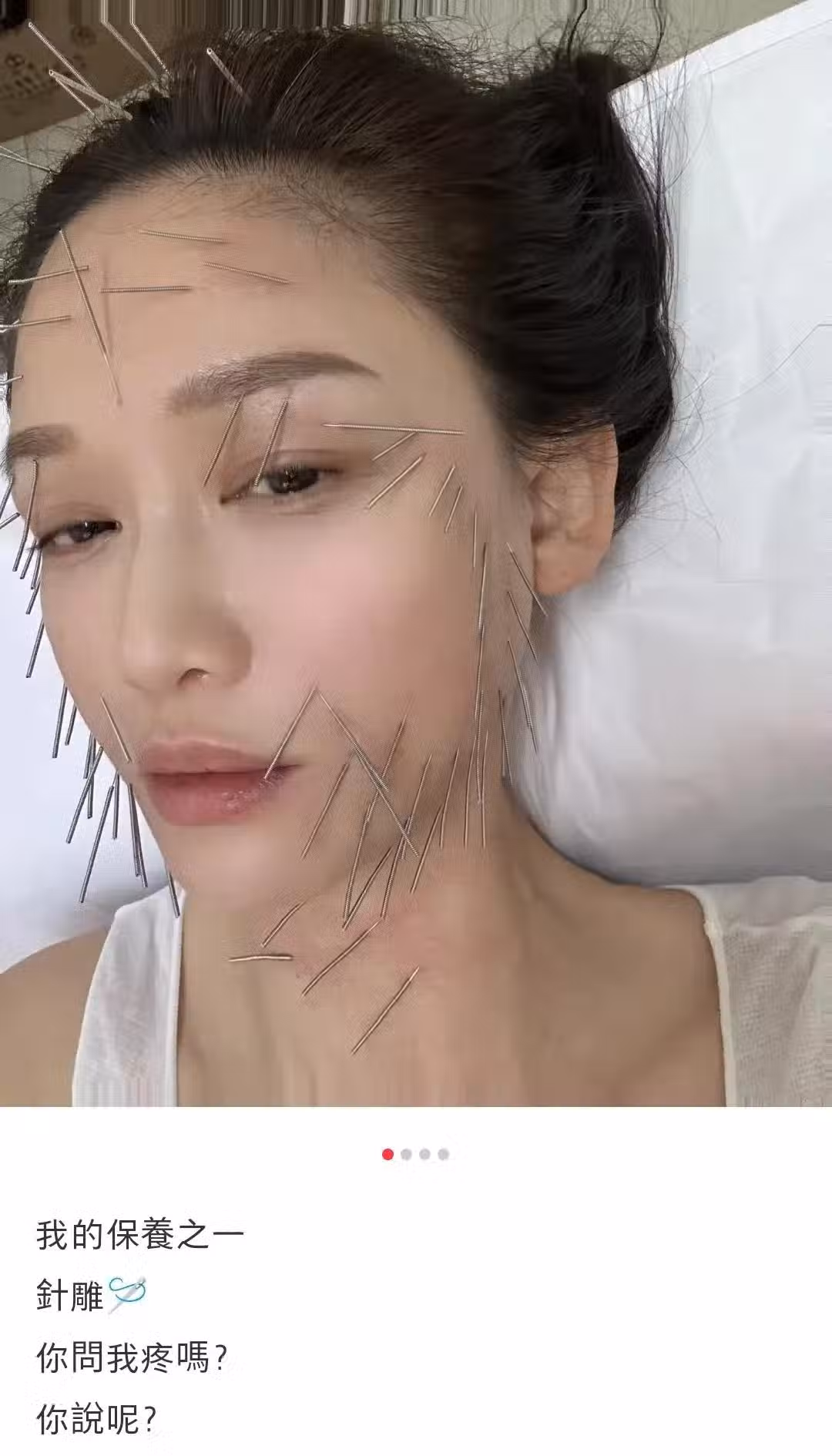 陳喬恩也自曝這樣是為了保養,頭上臉上被扎的銀針,估計都快上百根了,簡直被紮成刺蝟。