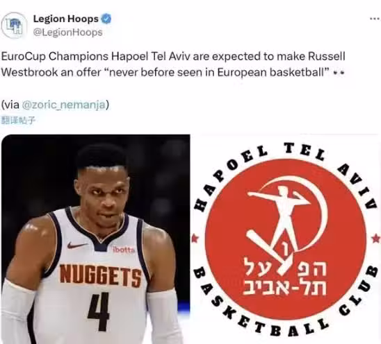 比起掘金下賽季的347萬美元合同,威少加盟特拉維夫哈普爾能拿的更多。在掘金,威少打下手還要背鍋。在特拉維夫哈普爾,威少將成為球隊的主心骨,還能享受到球迷的讚美與歡呼。